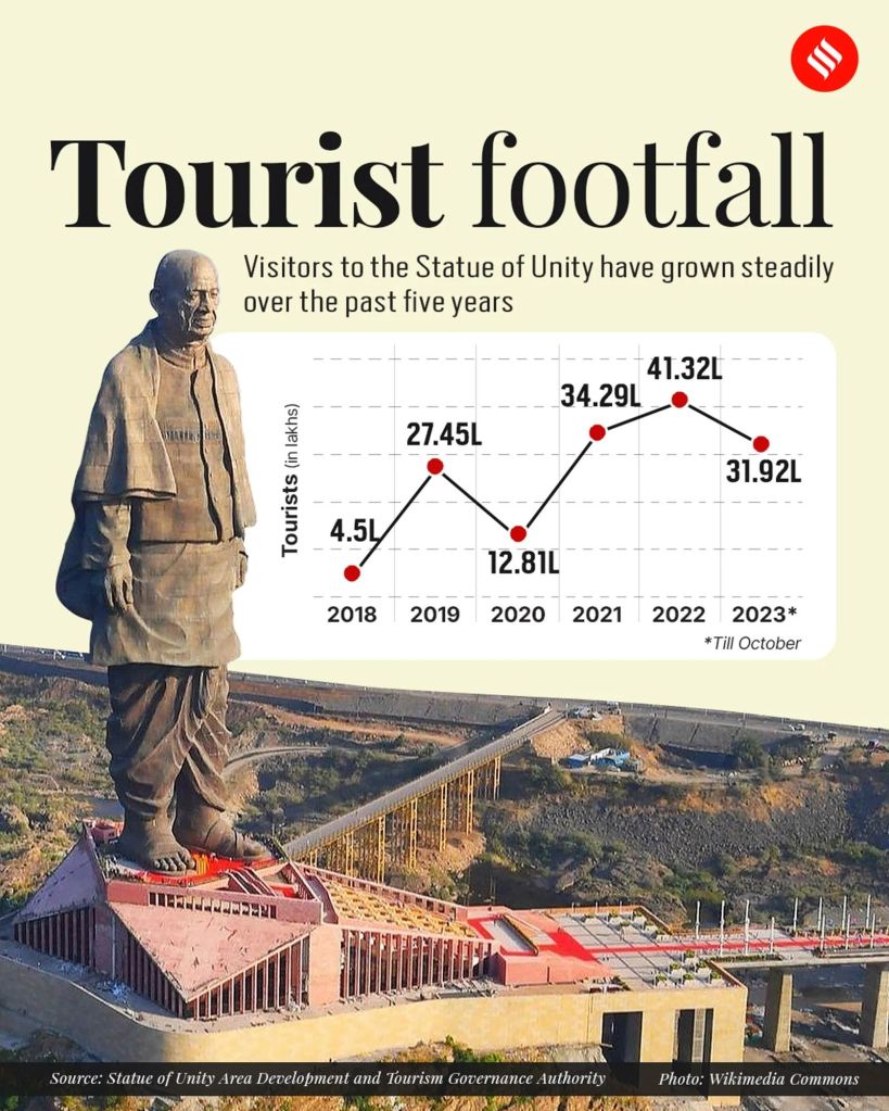 Over 128,000 tourists visited the statue in the first eleven days of its opening to the public on 1 November 2018. It has been included in the Shanghai Cooperation Organisation’s ‘8 Wonders of SCO’ list. In its first year of operation, the Statue of Unity attracted 2,900,000 visitors and collected ₹82 crore (US$11.64 million) in ticket revenue. By 15 March 2021, 5 million tourists visited the venue. It was visited by 10 million people by November 2022. In five years since opening, the statue attracted over 15 million cumulative visitors.